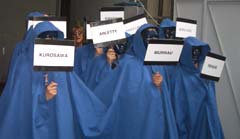 Nicola L. nous invite au Mamco de Genève à pénétrer littéralement son oeuvre. Ses grandes capes communautaires rappellent sa série des "Pénétrables" (nommés ainsi par Pierre Restany en 1968) récement exposée à la galerie Patricia Dorfmann à Paris. Ces "Pénétrables" sont des toiles montées sur chassis dans lesquelles nous pouvons entrer par 5 orifices munis de manchons (4 pour les membres, 1 pour la tête).