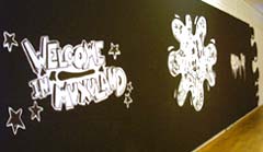 "Welcome in Muxuland" : l'artiste nous accueille dans une première salle avec cette phrase peinte en blanc sur fond noir. Tâches d'encre, ronde de personnages de contes de fée, dessins naïfs et fantastiques en noir et blanc peuplent les murs, profusion d'images sorties tout droit de l'imaginaire de Fabien Verschaere. On y retrouve des personnages qu'on connaissait déjà, pour les avoir vus dans d'autres expositions de l'artiste, mais aussi de nouvelles représentations qui viennent enrichir son univers.